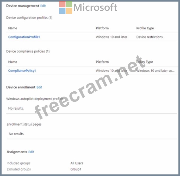 Question 25: You have devices enrolled in Microsoft Intune as shown in th...