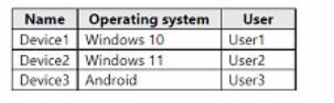 Question 77: You have a Microsoft 365 tenant that contains the devices sh...