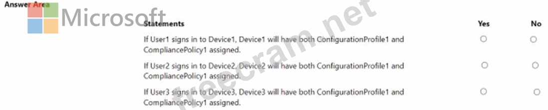 Question 37: In Microsoft Intune, you have the device compliance policies...