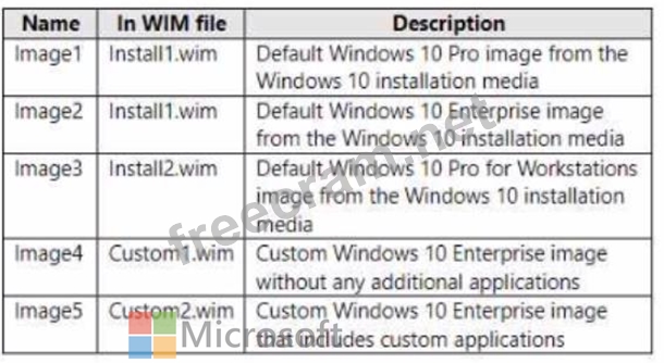 You have a Microsoft Deployment Toolkit (MDT) deployment share named Share 1. You add Windows 10 images to Share! as shown in the following table.