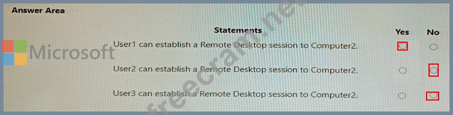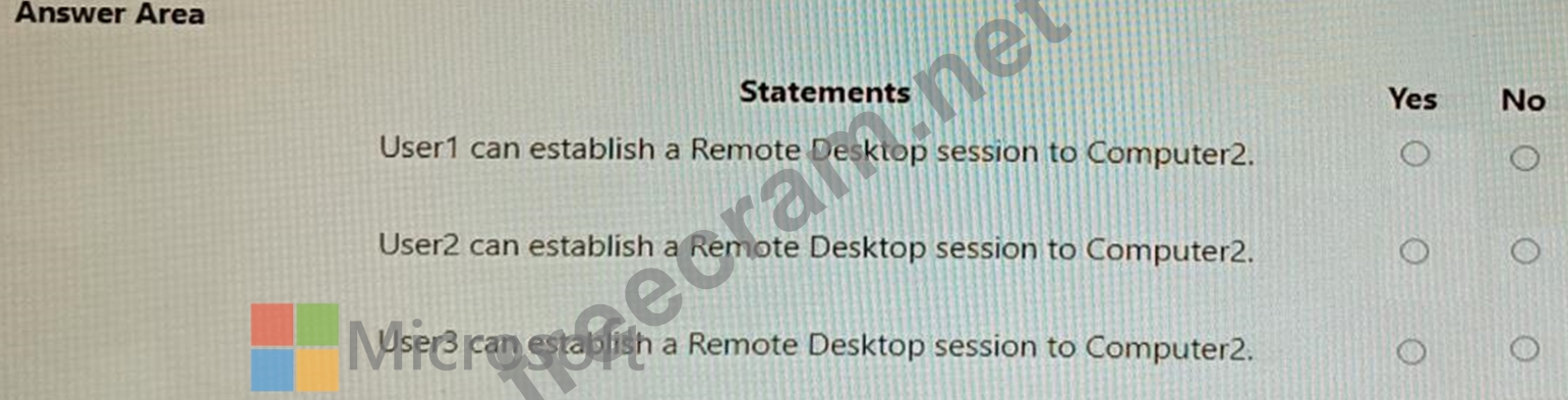 Your network contains an Active Directory domain named adatum.com. The domain contains two computers named Computer1 and Computer2 that run Windows 10. Remote Desktop is enabled on Computer2.