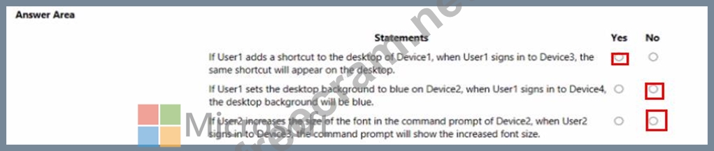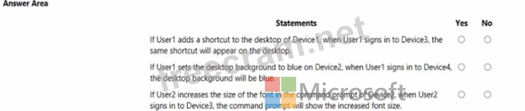 For each of the following statements, select Yes if the statement is true. Otherwise, select No. NOTE: Each correct selection is worth one point.