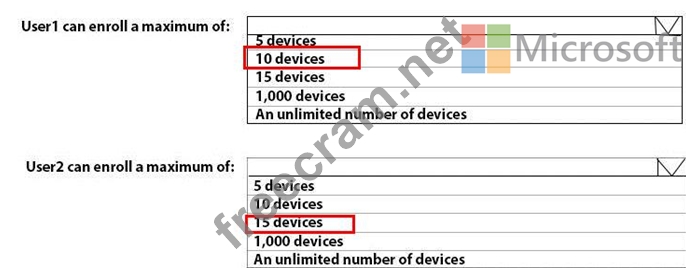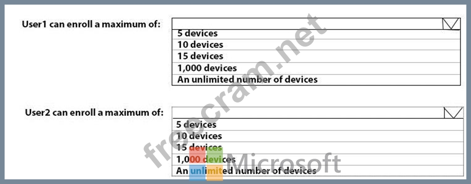 What is the maximum number of devices that User1 and User2 can enroll in Intune? To answer, select the appropriate options in the answer area.