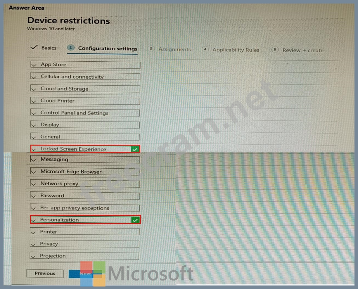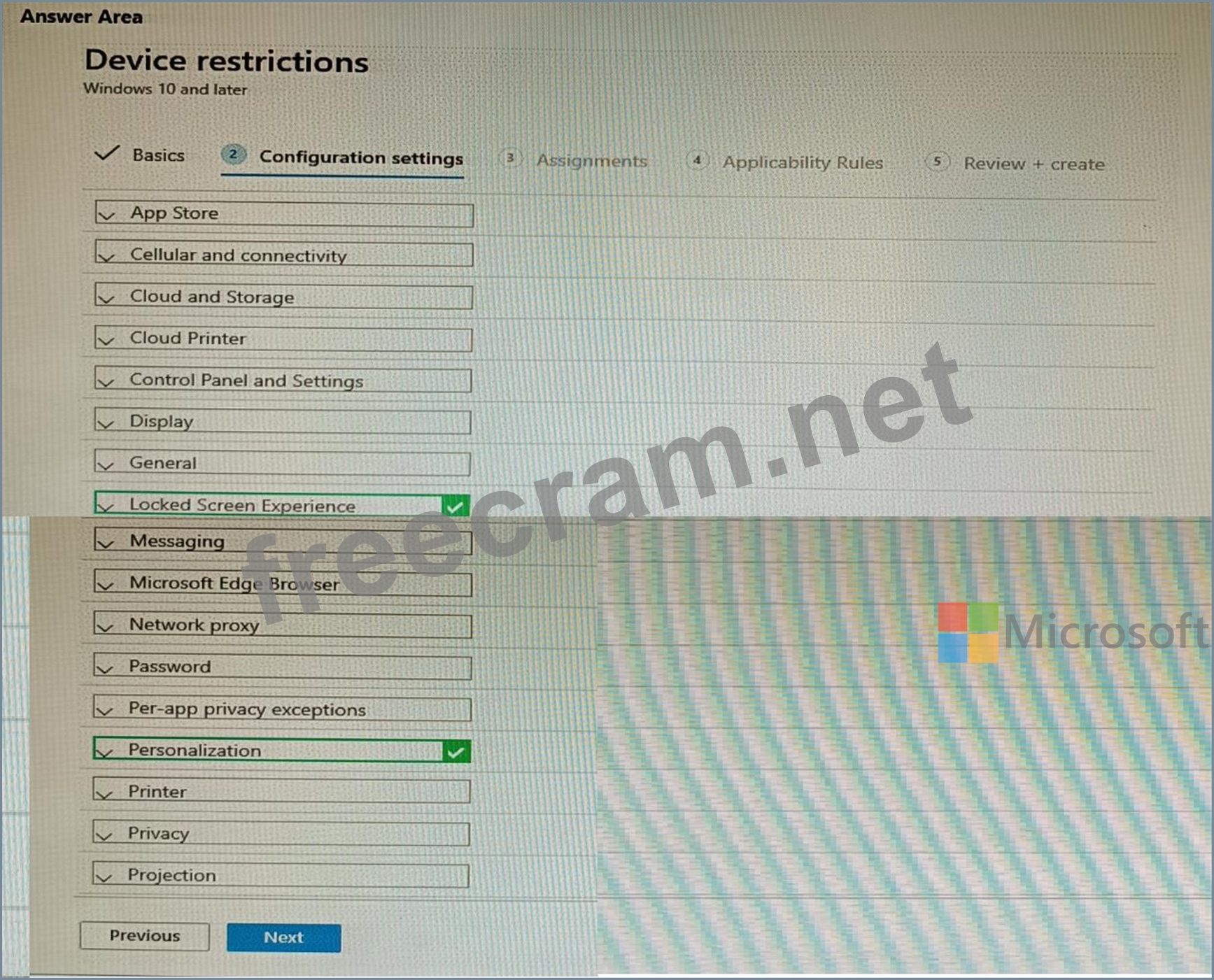 Which two settings should you configure in the Device restrictions configuration profile? To answer, select the appropriate settings in the answer area.