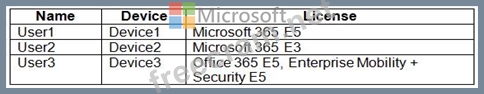 The devices are assigned to the users shown in the following table.