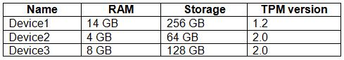 Question 11: You have the Windows 10 devices shown in the following table...