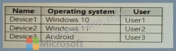 Question 30: You have a Microsoft 365 tenant that contains the devices sh...