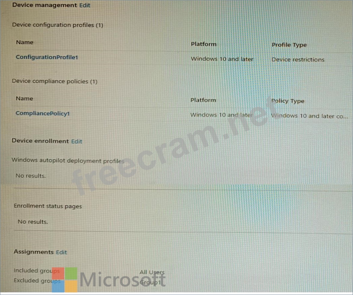 Question 136: You have a Windows 10 device named Computer1 enrolled in Mic...