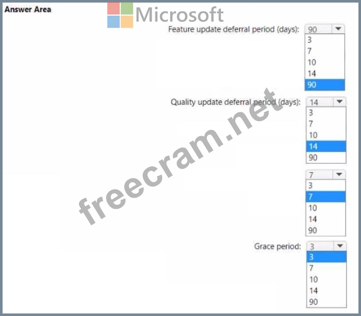 How should you configure the update ring? To answer, select the appropriate options in the answer are a. NOTE: Each correct selection is worth one point.
