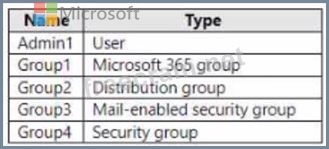 You have a Microsoft 365 tenant that contains the objects shown in the following table.