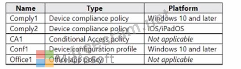 You have a Microsoft Intune deployment that contains the resources shown in the following table.