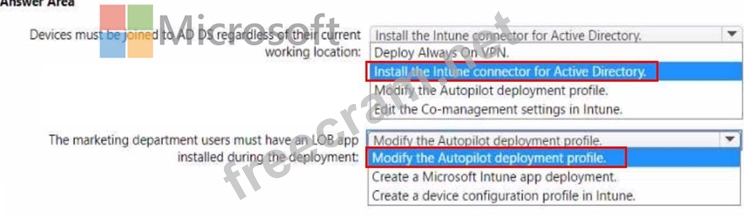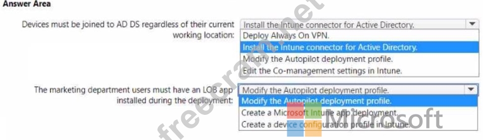 * Users in the marketing department must have a Iine-of-business (LOB) app installed during the deployment.