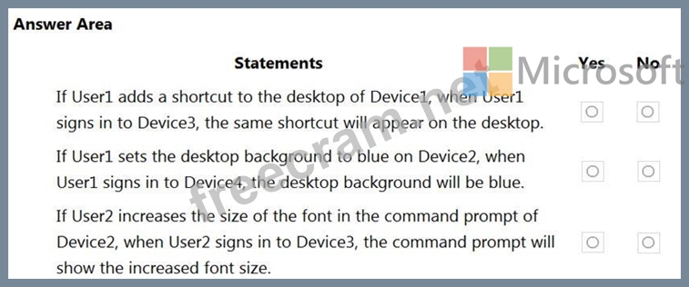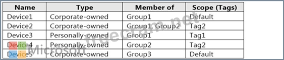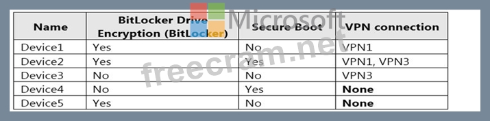 The Windows 10 devices are configured as shown in the following table.