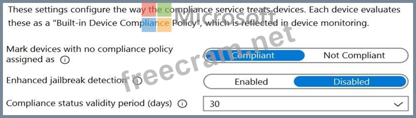 The Compliance policy settings are shown in the following exhibit.