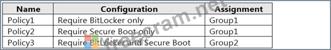 Microsoft Endpoint Manager has the compliance policies shown in the following table.