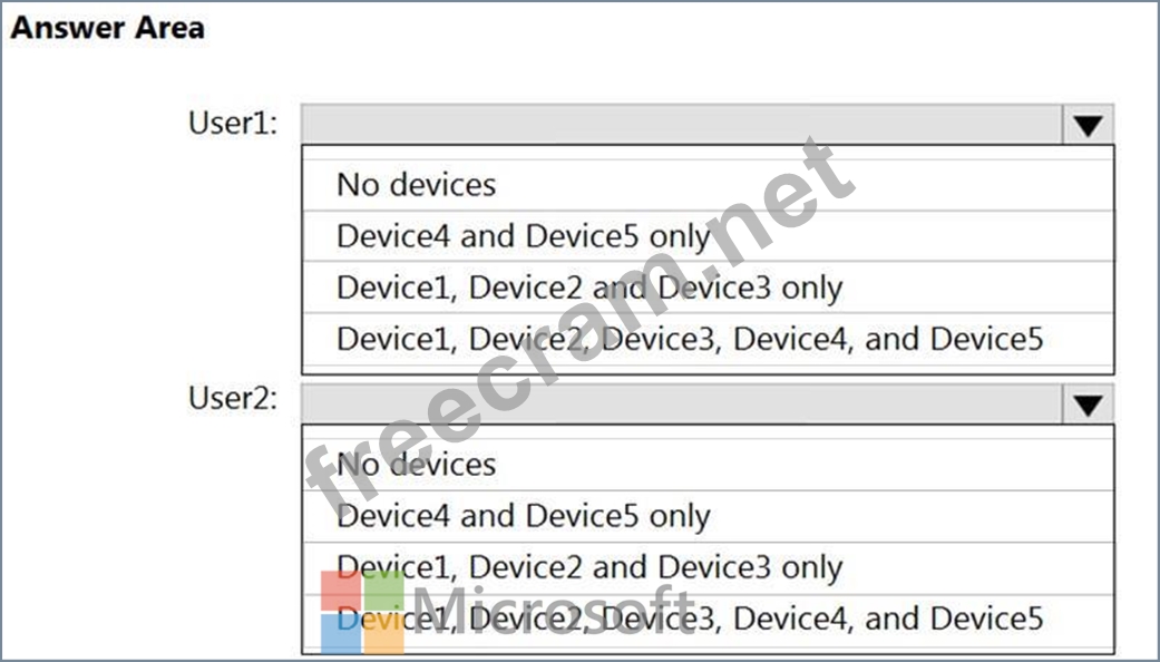 Microsoft Endpoint Manager has the compliance policies shown in the following table.