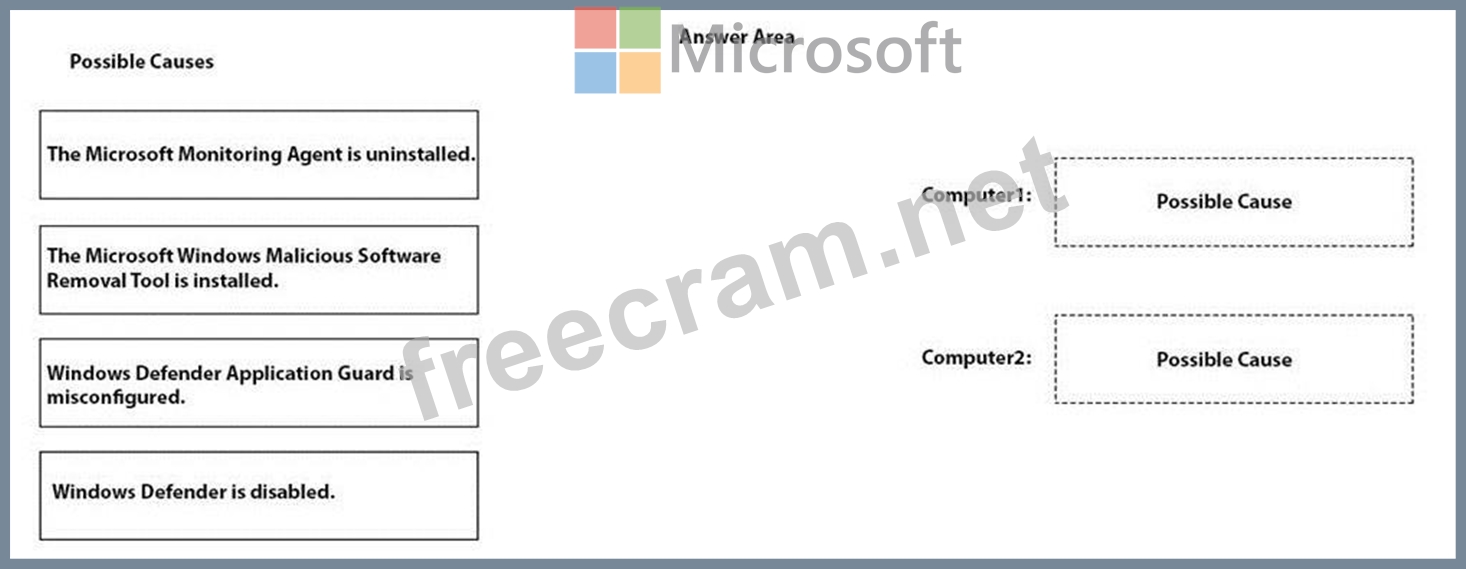 Question 65: Drag and Drop Question You use the Antimalware Assessment so...