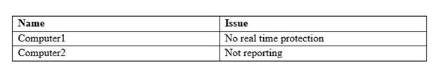 You use the Antimalware Assessment solution in Microsoft Azure Log Analytics. From the Protection Status dashboard, you discover the computers shown in the following table.