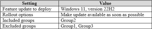 You have a feature update deployment profile named Deployment1 as shown in the following table.