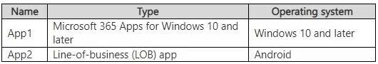 From the Microsoft Intune admin center, you add the apps shown in the following table.