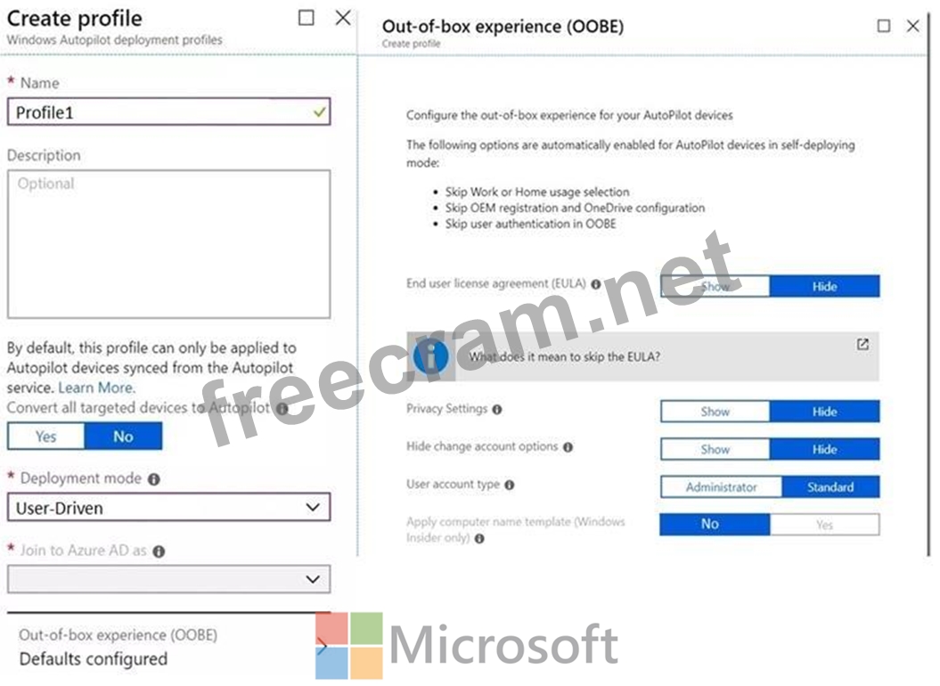 You create the Windows Autopilot deployment profile-shown in the following exhibit.