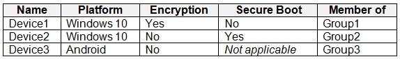 You have devices enrolled in Microsoft Intune as shown in the following table.