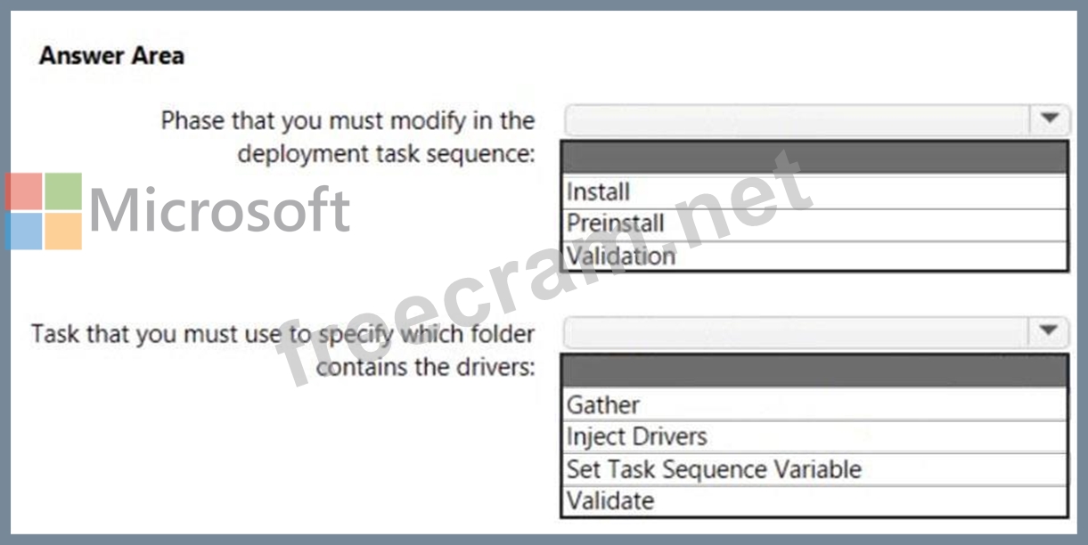 This task sequence step injects drivers that have been configured for deployment to the target computer.