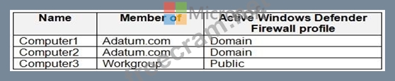 On Computer1, Windows Defender Firewall is configured as shown in the following exhibit.