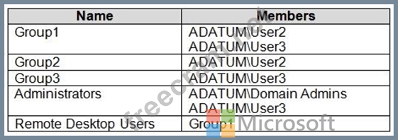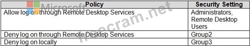 The relevant user rights assignments for Computer2 are shown in the following table.