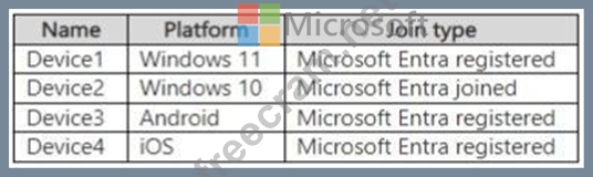 You have a Microsoft 365 E5 subscription that contains the devices shown in the following table.