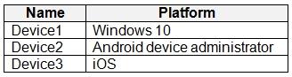 Your company has devices enrolled in Microsoft Intune as shown in the following table. In Microsoft Intune admin center, you define the company's network as a location named Location1. Which devices can use network location-based compliance policies?