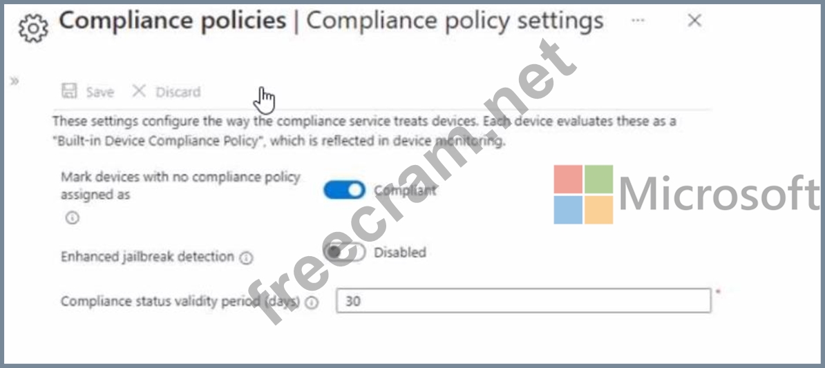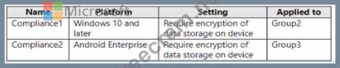 Question 32: In Microsoft Intune, you have the device compliance policies...