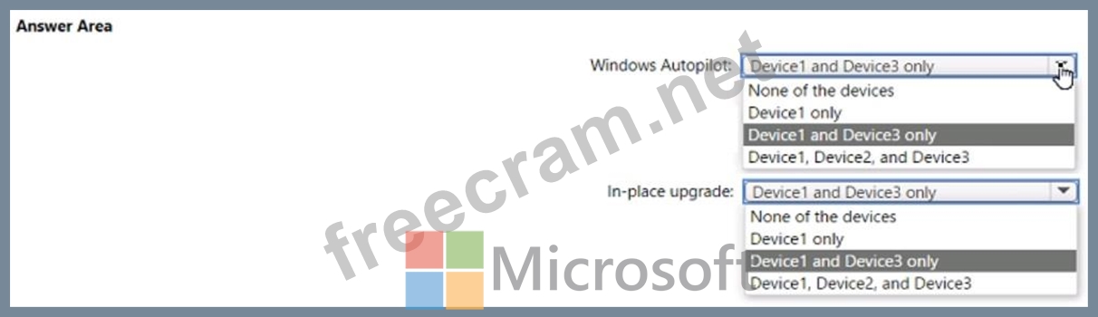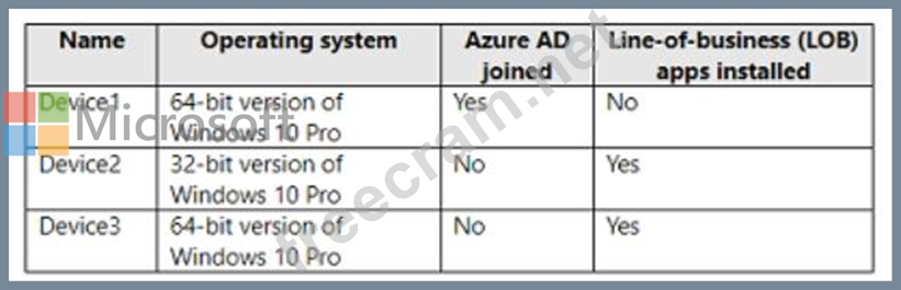 You have a Microsoft 365 subscription that uses Microsoft Intune Suite. You use Microsoft Intune to manage devices. Azure AD joined Windows devices enroll automatically in Intune. You have the devices shown in the following table.