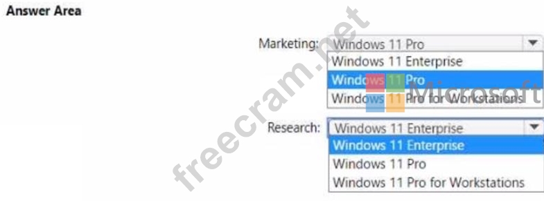 You plan to create Windows 11 device builds for the marketing and research departments The solution must meet the following requirements: