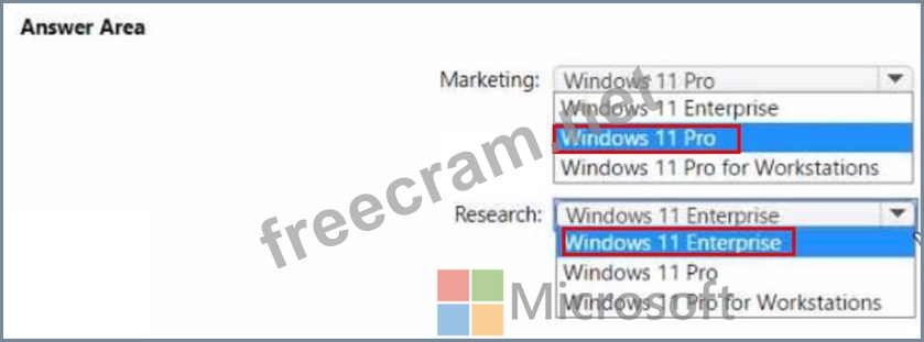 * Marketing department devices must support Windows Update for Business.