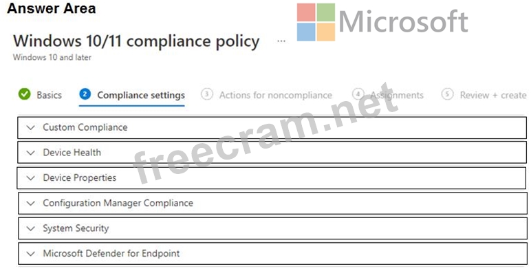 Question 32: In Microsoft Intune, you have the device compliance policies...