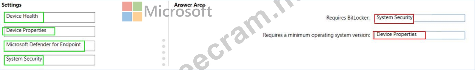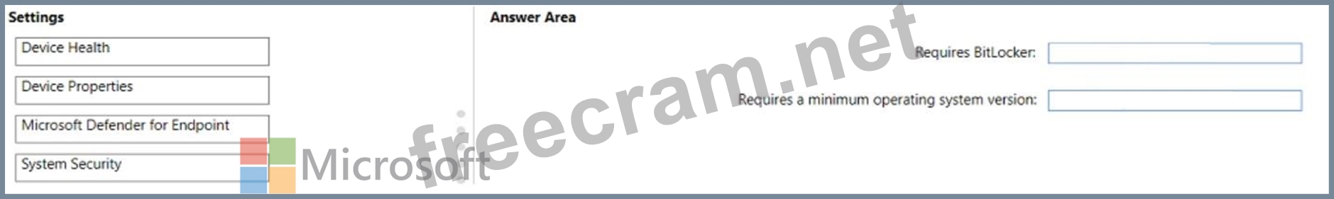 You have a Microsoft 365 subscription. The subscription contains computers that run Windows 11 and are enrolled in Microsoft Intune. You need to create a compliance policy that meets the following requirements: