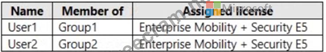 You have an Azure Active Directory Premium Plan 2 subscription that contains the users shown in the following table.