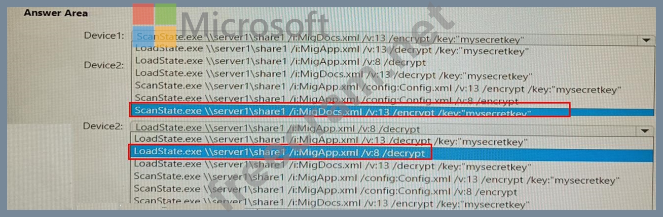 Which command should you run on each device? To answer, select the appropriate options in the answer area.