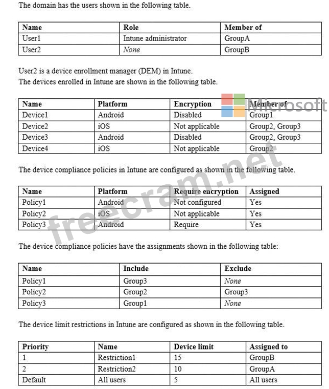 The computers are managed by using Microsoft System Center Configuration Manager. The mobile devices are managed by using Microsoft Intune.