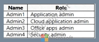 * Admin1 An application admin has full access to enterprise applications, applications registrations, and application proxy settings. * Admin2 Mark your app as publisher verified. In Azure AD this user must be a member of one of the following roles: Application Admin, Cloud Application Admin, or Global Admin. * Admin3 Office Apps admin - Assign the Office Apps admin role to users who need to do the following: - Use the Office cloud policy service to create and manage cloud-based policies for Office - Create and manage service requests - Manage the What's New content that users see in their Office apps - Monitor service health Reference: Office Apps admin - Assign the Office Apps admin role to users who need to do the following https://docs.microsoft.com/en-us/azure/active-directory/develop/mark-app-as-publisher-verified