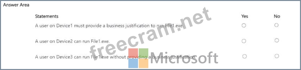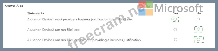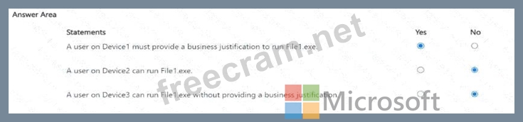 * Assignments: Group1 Each device contains a file named File1.exe that can be run only by an administrator.