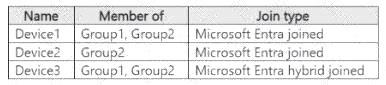 You have a Microsoft 365 E5 tenant that contains Windows devices enrolled in Microsoft Intune as shown in the following table.