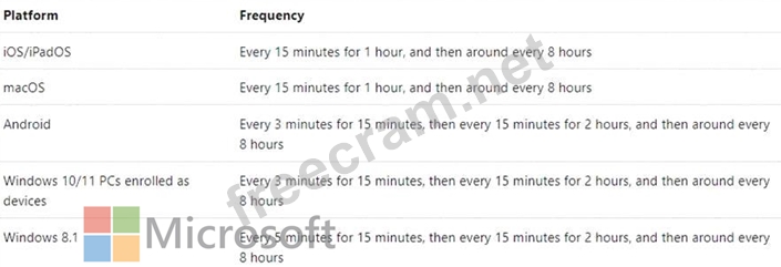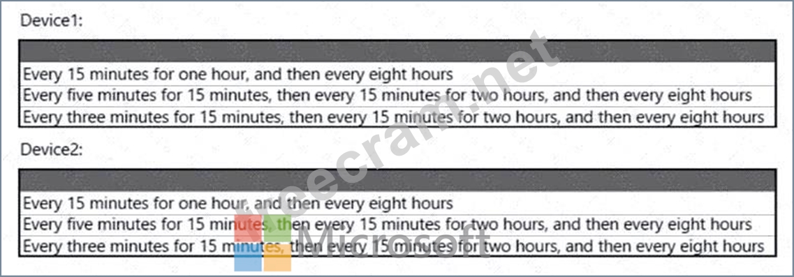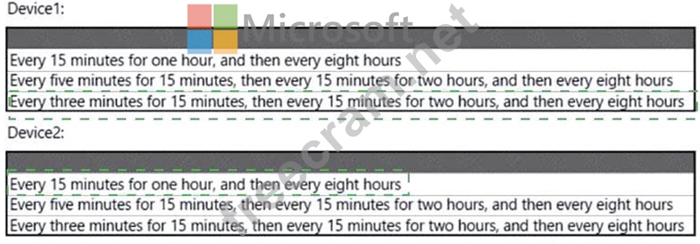 How often will the compliance policy check-ins run after each device is enrolled in Intune? To answer, select the appropriate options in the answer area.