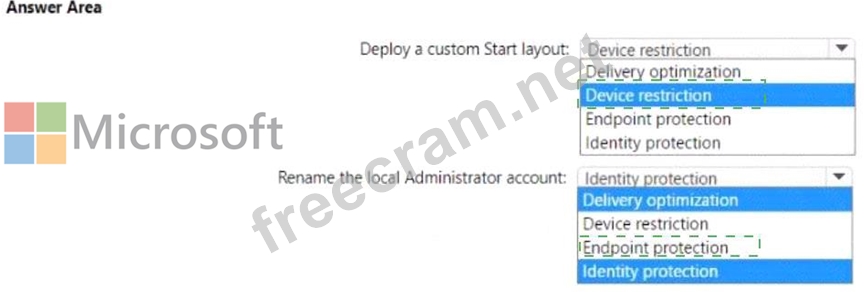 You have a Microsoft 365 subscription that uses Microsoft Intune and contains 100 Windows 10 devices. You need to create Intune configuration profiles to perform the following actions on the devices: