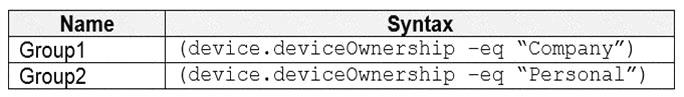 You have groups that use the Dynamic Device membership type as shown in the following table.