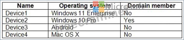 You have the devices shown in the following table. You plan to implement Microsoft Defender for Endpoint. You need to identify which devices can be onboarded to Microsoft Defender for Endpoint. What should you identify?