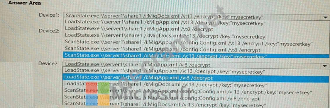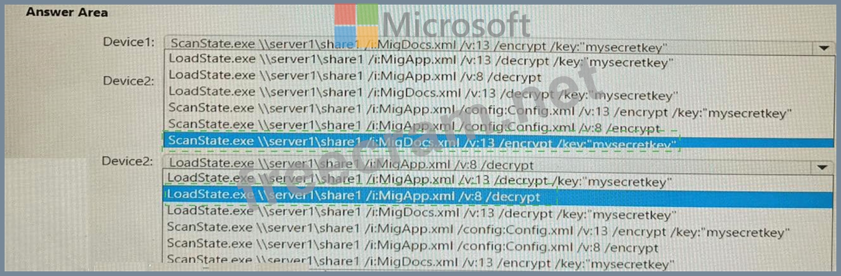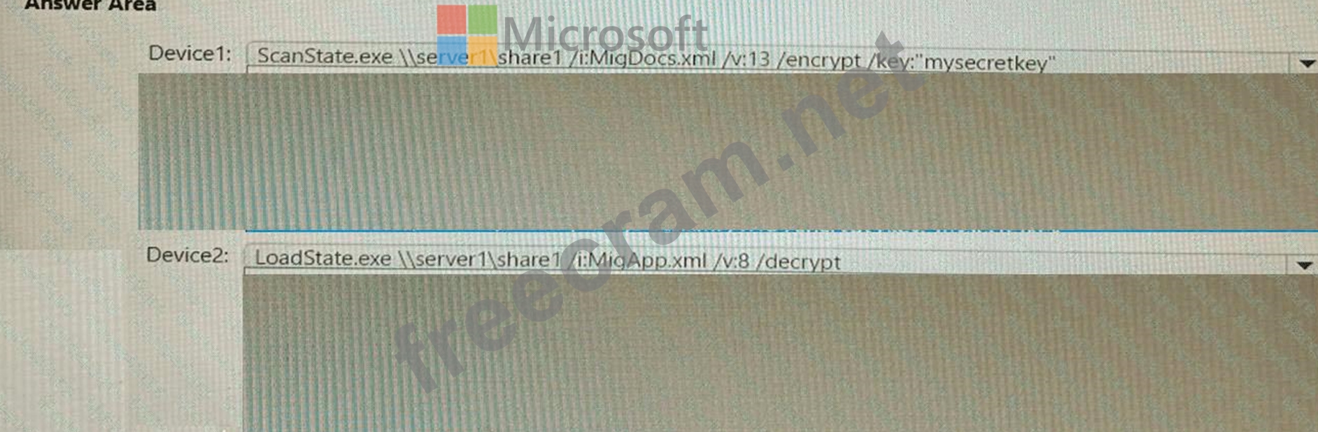 Which command should you run on each device? To answer, select the appropriate options in the answer area.