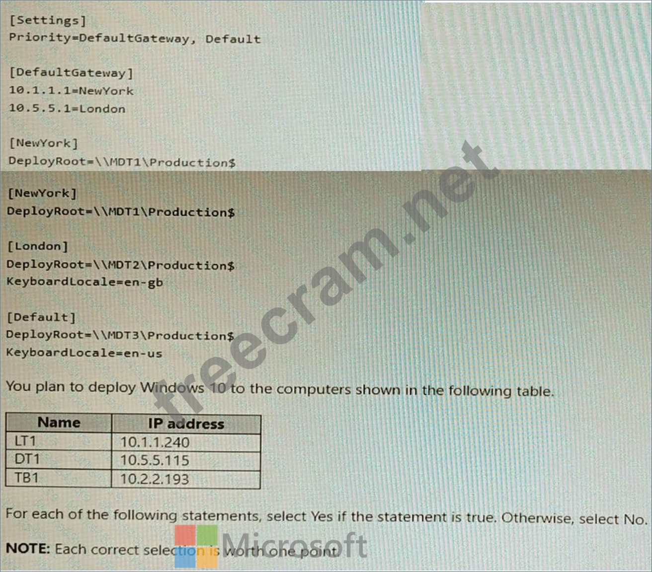 Question 1: You use the Microsoft Deployment Toolkit (MDT) to deploy Win...