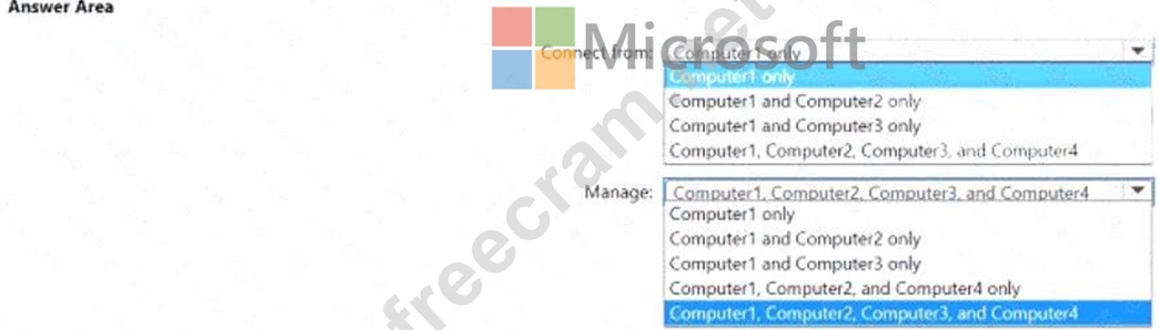 The domain contains four computer named Computer 1. Computet2. Computed, and Computer4 that run Windows 10. Vou perform the following actions: